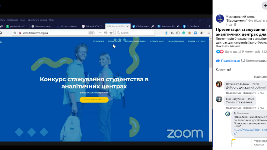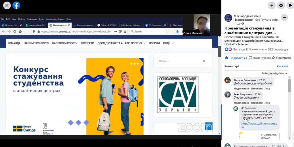 Сьогодні відбувся інформаційний день щодо конкурсу стажувань для молоді в рамках «Ініціативи з розвитку аналітичних центрів» в Україні. Його нещодавно оголосив Міжнародний фонд «Відродження». Тож, прикарпатці отримали повну інформацію про те, хто саме і за яких умов може пройти стажування з 12 квітня по 12 листопада та чому це варто зробити саме у Прикарпатському університеті! Всі бажаючі змогли поставити організаторам свої питання.