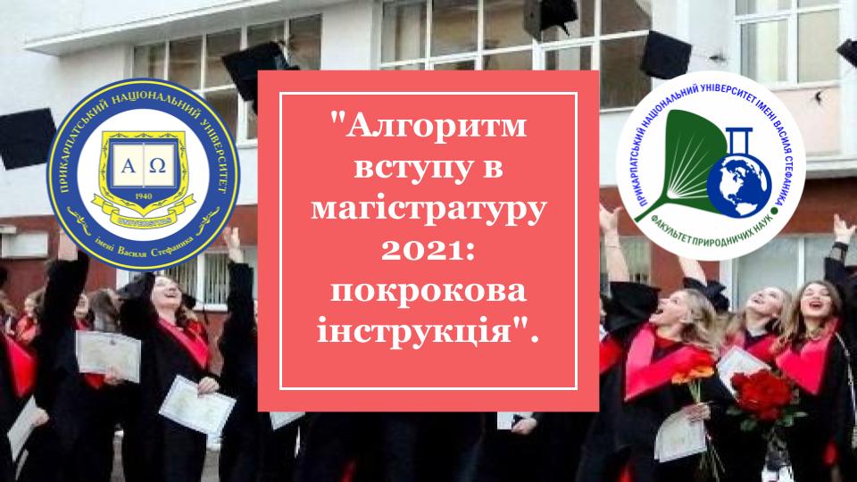 В п’ятницю, 2 квітня 2021 р., о 13:00 год відбудеться профорієнтаційна онлайн-зустріч зі студентами 4 курсу освітнього рівня “Бакалавр” денної та заочної форми навчання на тему: “Алгоритм вступу в магістратуру 2021: покрокова інструкція”.