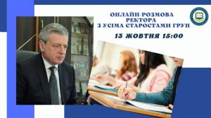 13 жовтня о 15.00 відбудеться робоча онлайн-зустріч ректора Прикарпатського національного університету імені Василя Стефаника Ігоря Цепенди зі старостами всіх академічних груп денної і заочної форм навчання інститутів, факультетів та коледжу ПНУ. Приєднання до онлайн-зустрічі за посиланням: https://pu.webex.com/meet/pnu