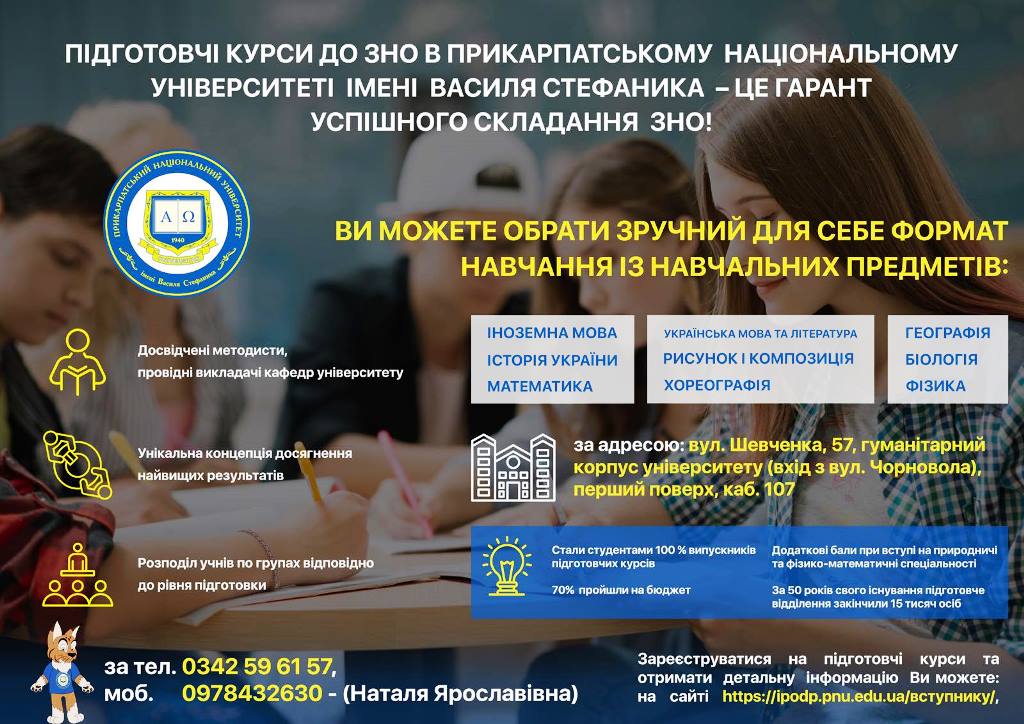 Інститут післядипломної освіти та довузівської підготовки Прикарпатського національного університету імені Василя Стефаника проводить набір слухачів на курси підготовки до ЗНО у 2023 році!